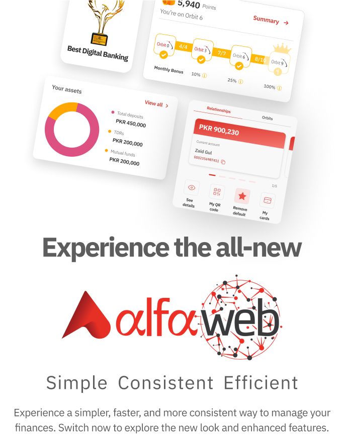 Bank Alfalah offers you convenience of banking from home or your office because we understand that your time is important.